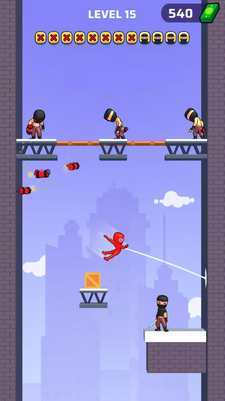 在这款激动人心的移动超休闲游戏中,你将扮演一名英勇的火柴人,他掌握了射网和瞬移到不同地点的艺术。凭借可靠的蜘蛛网射击能力,你必须通过一系列具有挑战性的障碍,摧毁路上的敌人。