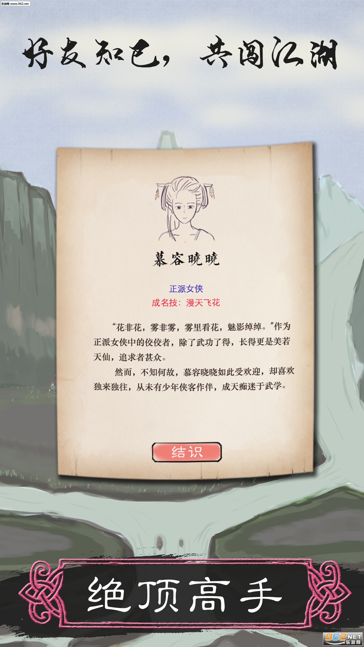 《所谓侠客4.0最新版》是一款非常好玩的武侠题材RPG手游,在游戏中你就是一位行侠仗义的大侠,但是武功不高何谈仗义,所以你要好好修炼你的武功,寻找神功秘籍,成为万人敬仰的大侠吧!喜欢这款游戏的玩家欢迎下载安装试玩!