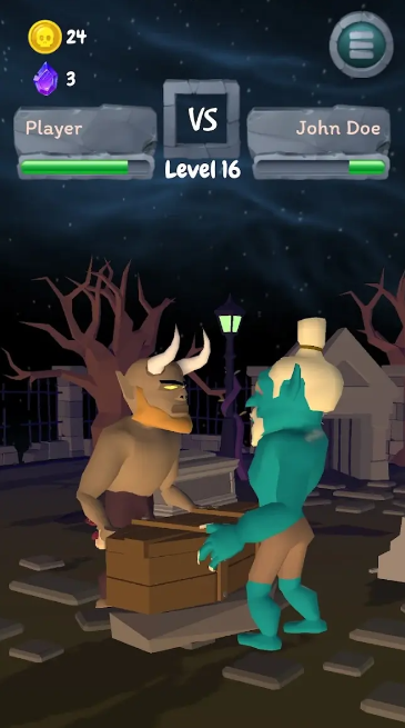 《怪物耳光》是一款激烈的扇耳光格斗游戏,你将在惊险刺激的一对一战斗中挑战可怕的怪物。证明你的力量,释放强大的耳光,争夺成为冥界终极冠军的殊荣。体验前所未有的扇耳光锦标赛的刺激!在《怪物耳光》中,每个挑战都会让你与可怕的敌人对抗——从骷髅、吸血鬼到像克朗普斯这样臭名昭著的传奇怪物,让你身临其境地体验克朗普斯扇耳光的刺激。游戏背景设定在充满骷髅、坟墓和恐怖的阴森万圣节主题地牢中,每场战斗都将考验你的时机和精准度。这款游戏不仅仅是战斗,更是享受用耳光赢得胜利的乐趣!