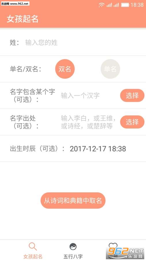 《女孩起名取名字的软件》是一款专为女孩子打造的取名软件,女孩子应该有一个优雅好听的名字,女孩起名取名字app中有着众多的名字可以借鉴,主要来源与古诗、楚辞、诗经、论语等,都有着一定的意境和寓意。