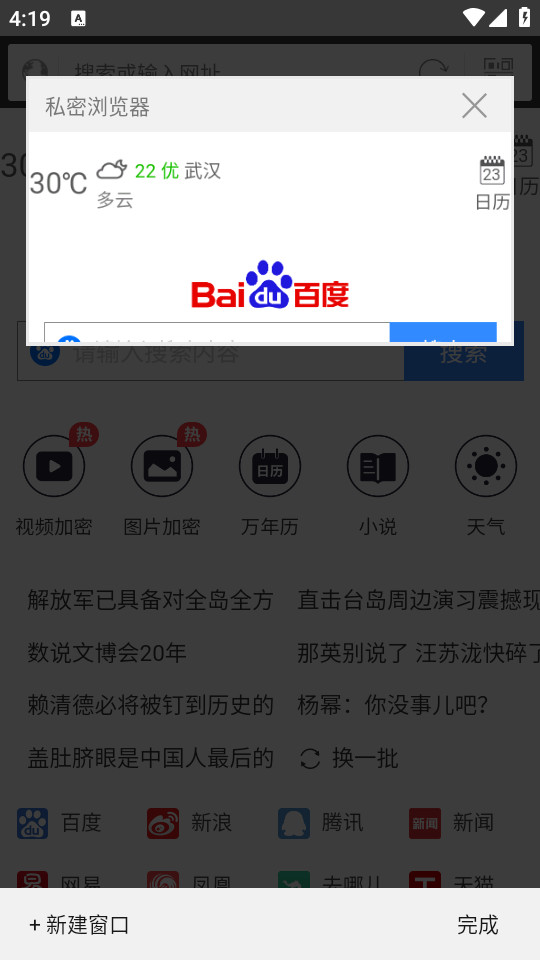 私密浏览器,保护您上网时下载的私密图片、视频、小说等不被人窥窃,无痕安全浏览,独创安全极速内核,保证信息不泄露,上网看图看片必备神器。