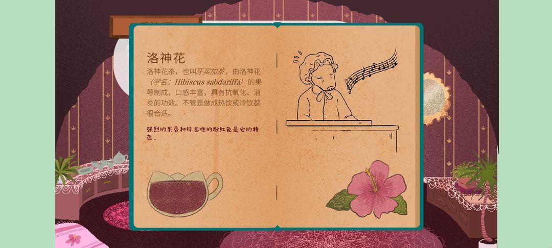 【广场】找女巫安多拉占卜,得到“地下”和“粉色”的线索,粉色即对应洛神花(线索在茶叶百科中有提到),