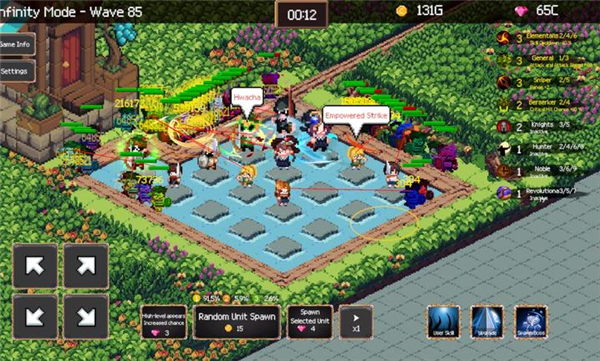 3、怪物波次包含普通杂兵、高速刺客、重装坦克三种类型,战斗失败时保留当前英雄等级,可重新调整布局再次挑战。