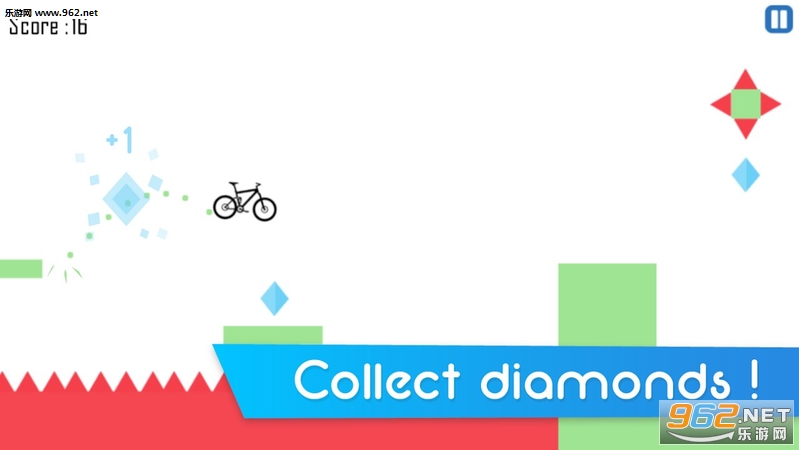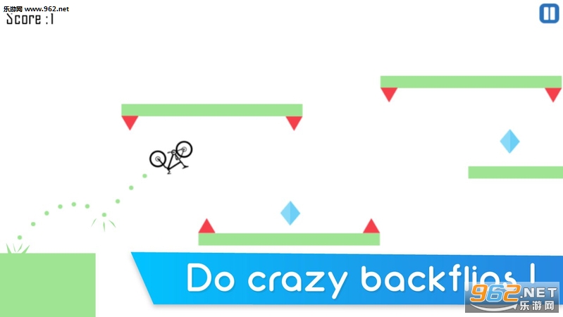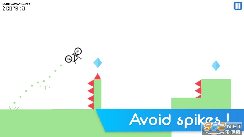简单易学难掌握有大量的自行车行动的一个手指的游戏,在屏幕上任意位置点击跳过一个小轮车比赛自由泳和做后空翻技巧敲击两次,让您的具有挑战性的自行车骑手双跳超过或为了避免尖峰滑冰而急于得到所有的钻石所以你知道,让他们所有的方式?