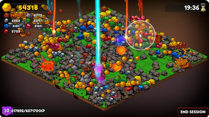 1、全程手动,矿场模块基本没啥用,前中期还比较有趣,往后变得非常简单,就是拿鼠标在那甩,一把又一把,攒够矿石点天赋合稿子,然后没了。