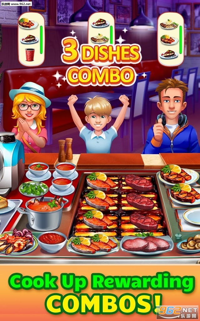 《Cooking Craze: Crazy, Fast Restaurant Kitchen Game安卓版》是一款狂热的餐厅模拟器类游戏,烹饪、上菜!一气呵成!你需要以最快、最准确的方式来搞定客户的需求~游戏的画面质量不错,体验感尚佳。