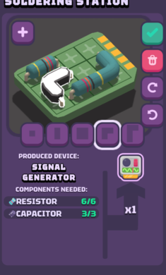 2、打造你的梦想工厂:使用电阻器、晶体管和天线等组件,制作海量电子零件。制作的越多,销量就越高。
