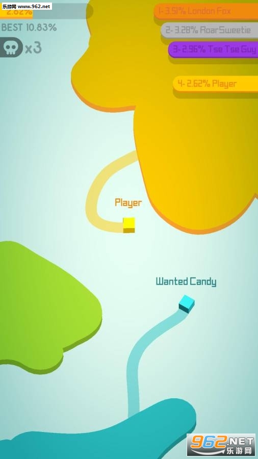 游戏中玩家需要操作纸团去画地图,画成一个完整的圆就可以占领这块地,每一个玩家都有一个专属的颜色,将别人的颜色占为已用可以让你的地图变得更大,碰到其它纸团就会挂掉,看看你能画到多大的地图吧。