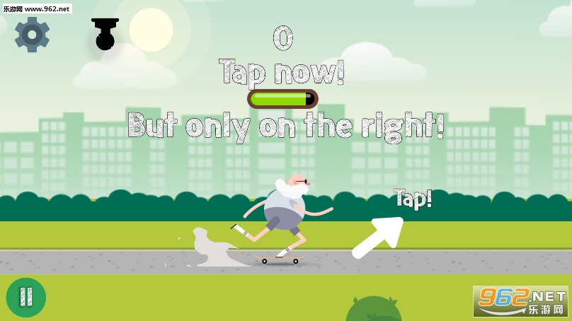 2.去帮助老爷爷进行滑板的冒险,点击你的屏幕不断的加速,躲避那些危险的障碍物;