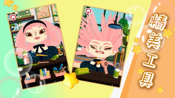 托卡美发生活是托卡系列游戏一款体验感十分舒适休闲的美发模拟游戏,玩家的任务就是帮助不同的顾客来修建最适合他们的发型,每一位顾客的要求和喜好都是不同的,玩家在进行沟通协调的同时也需要不断精进自己的美发技艺,各种创意发型都可以随时来挑战,不仅可以培养孩子的手眼协调能力,还可以增进亲子感情交流时间,让家长有更多的时间陪伴孩子一起玩耍。