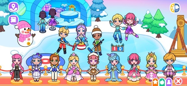 公主们可以在冰上滑行和舞蹈,或者是进行一场精彩的冰壶比赛,有几个公主正在采集冰块并将其雕刻成雕像和服装呢。
