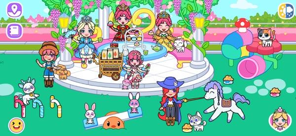 园丁在用工具修剪花园的植物,花园中华丽的公主们正在举办茶会,小动物在训练师的指挥下进行跳跃表演,这里充满了欢声笑语。