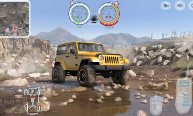 2、游戏将让你体验在各种地形上驾驶越野车的乐趣。你将需要在土路、山路,甚至是一些有丘陵的道路上驾驶。