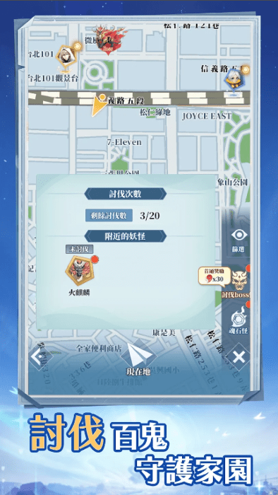 寻找附近的妖怪完成讨伐任务,获取专属荣誉勋章!