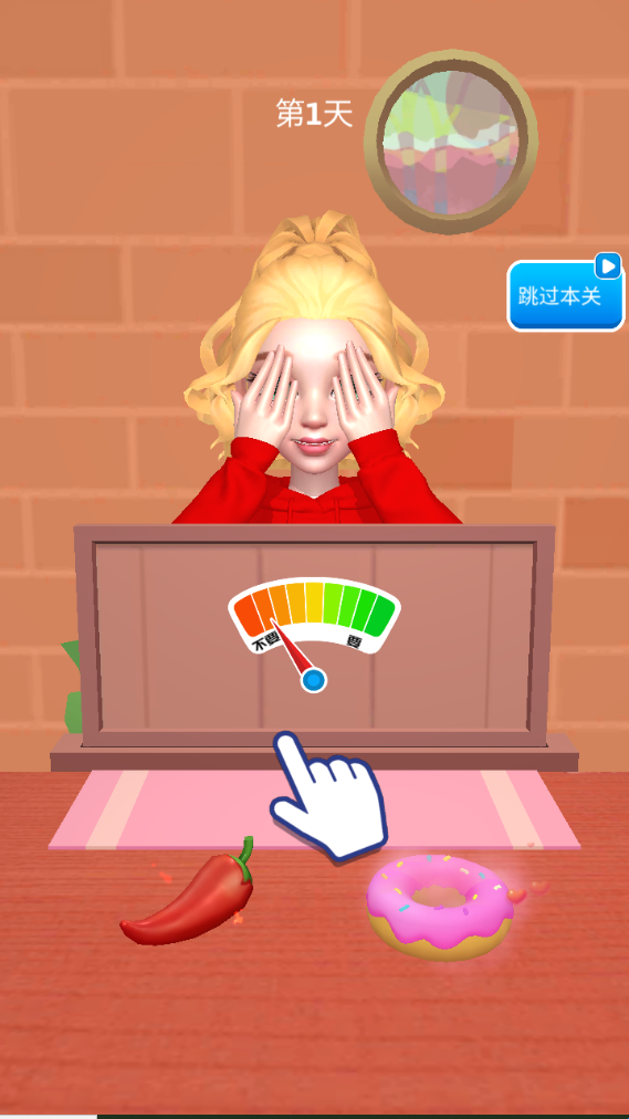 2、点击食物放置在女孩眼前,看对方选择