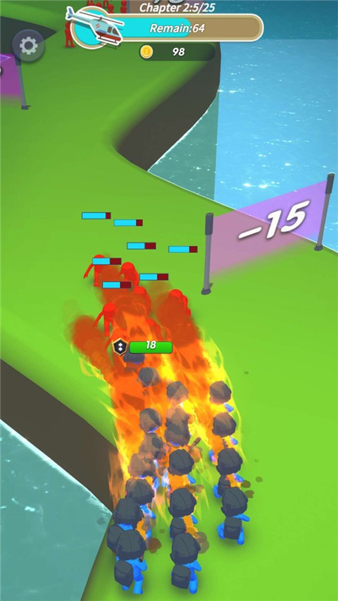 2、你会遇到很多障碍,可以你获得道具,有时士兵人数增加一倍,有时部队人数减少。