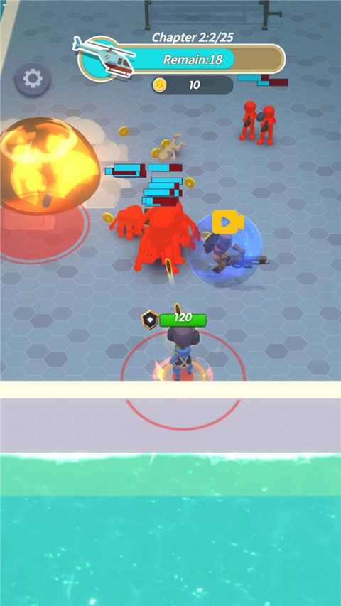 1、这是一款休闲益智娱乐枪战游戏,玩家必须控制蓝队的反派来攻击和摧毁红队。