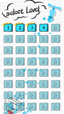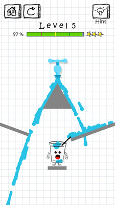 杯子是悲伤的,因为它是空的。你的工作是画一条线,用点大脑物理让玻璃充满蓝色果冻水,然后再次微笑!