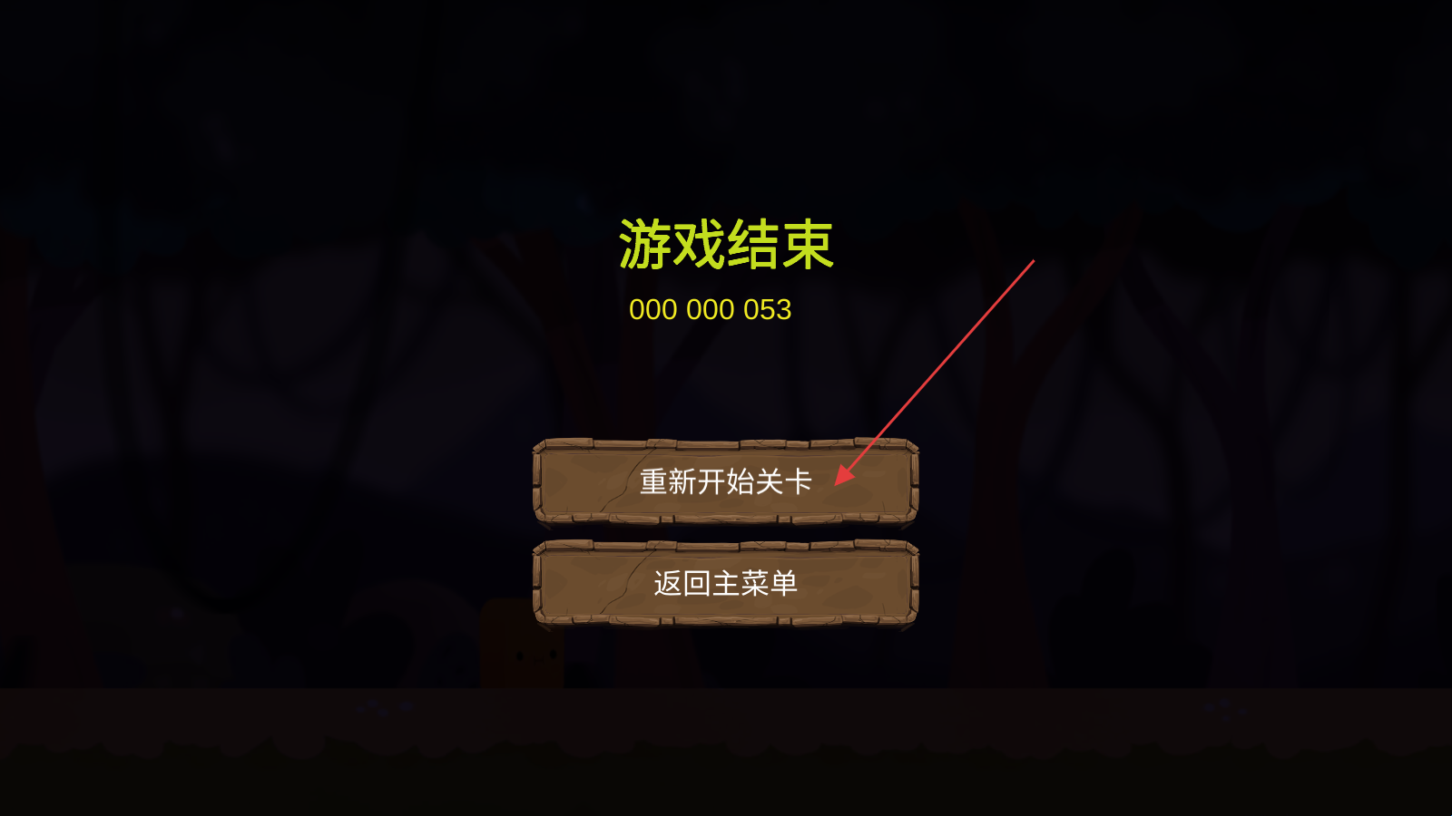 3、若游戏失败,出现游戏结束提示后,可点击【重新开始关卡】按钮,再次挑战当前关卡。