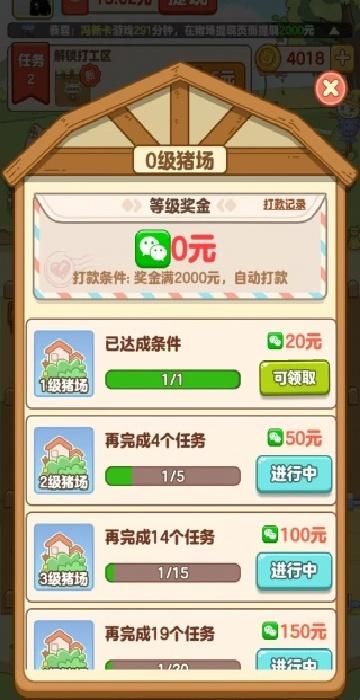 4、每日凌晨刷新高价红包任务,提前储备所需猪种;分享任务给好友可获得助力加速完成。