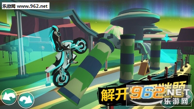 1、你将遇到跳跃、巨型坡道、升降梯和曲折蜿蜒的赛道等挑战,请尽量平稳驾驶太空自行车,并安全降落。