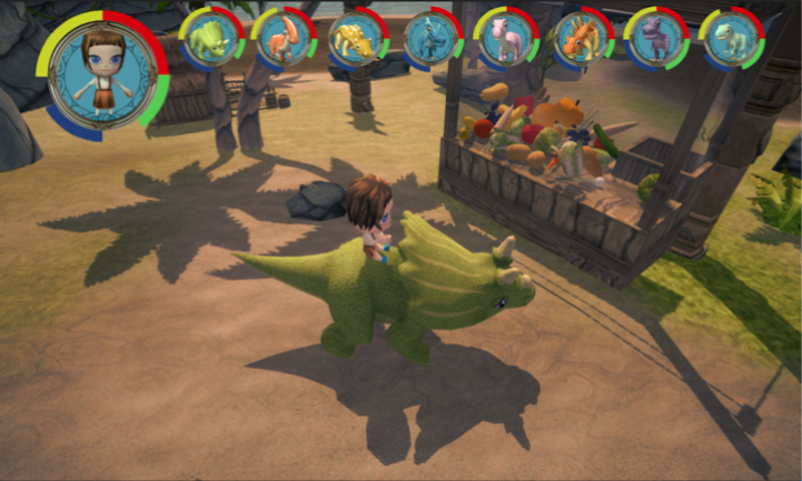 多达8只可控恐龙Blythe-Angel-Shinny-Oscar-Buttercup-Hugo-Rex-Zac骑在恐龙背上选择成为恐龙并探索侏罗纪群岛寻找食物——素食者吃庄稼,肉食者寻找鱼选择您的自定义角色外观并输入您自己的个人姓名探索侏罗纪群岛,种植庄稼来养活素食恐龙和你自己使用你的力量来恢复能量不足的恐龙!