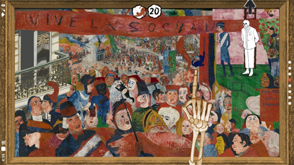 1、灵感来源:游戏以比利时现代艺术先驱詹姆斯·恩索尔(James Ensor)的作品为蓝本,采用超现实主义画风,呈现诡异、怪诞的油画世界。