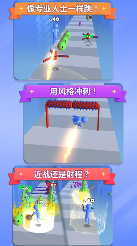 只有我能升级是一款跑酷小游戏,在这里玩家们需要控制橡皮人不断的向前冲刺!一路上收集道具、升级自身等级,选择合适的武器击毙大boss,一路过五关斩六将,顺利击败所有敌人到达终点即可!游戏精彩刺激,娱乐性极高,感兴趣的玩家们快来下载试试吧!