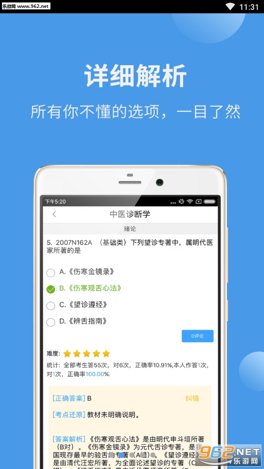 蓝基因中医考研APP是由北京蓝基因科技有限公司开发的一款针对中医学专业考研的应用。本应用不仅涵盖了1991年到2026年的中医考研题目,而且还对每道题目进行了答案的解析,并考点还原到教材!本应用还支持在线、离线教学功能,实现手机随时随地教学,节约考生备考时间!