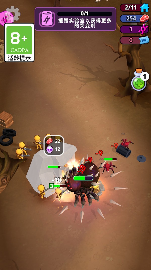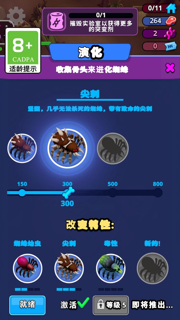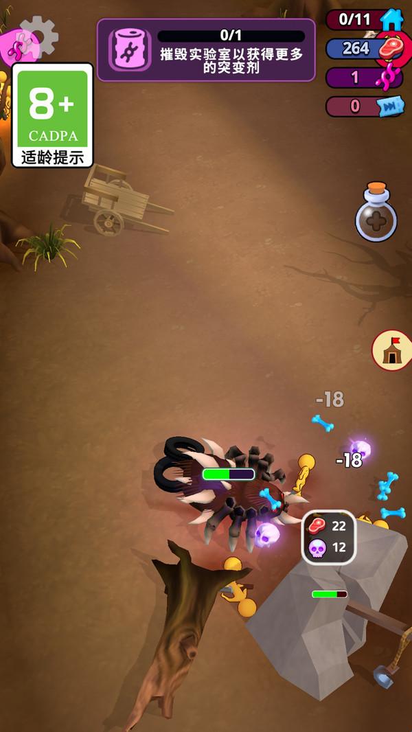 4、吞噬人类升级女王能力,解锁隐形突袭技能,驯服蜈蚣作为仆从。