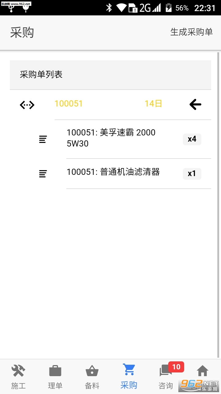 APP. 主要功能为接受用户在此门店的订单。根据客户订单来生成备料单, 采购单。 门店可通过APP直接和客户电话沟通。采购单可以通过APP 直接发送到供货商。 此APP为松湾维保的兄弟APP。 松湾维保为客户使用, 松湾技师为保养门店使用。 二者共同形成了用户和商家之间的互动沟通。