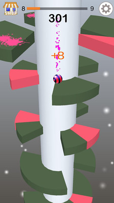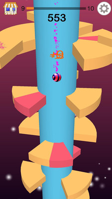 1、通过在屏幕上水平滑动手指来旋转螺旋迷宫,以引导跳球穿过螺旋塔中的间隙;