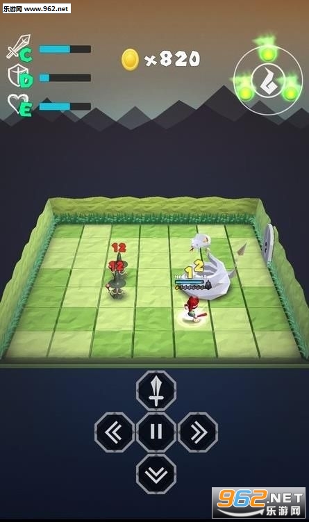 2、游戏一共有五个控制按钮,分别是上、下、左、右和暂停,其中前方有敌人时前进就是攻击;