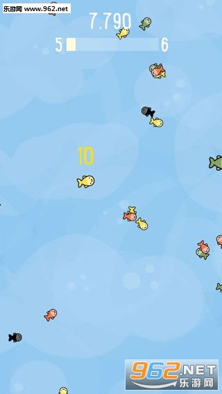 2、将相同颜色的鱼通过画圈的方式合并即可获得分数;