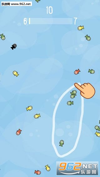2、不要圈到黑色鱼,会直接游戏结束