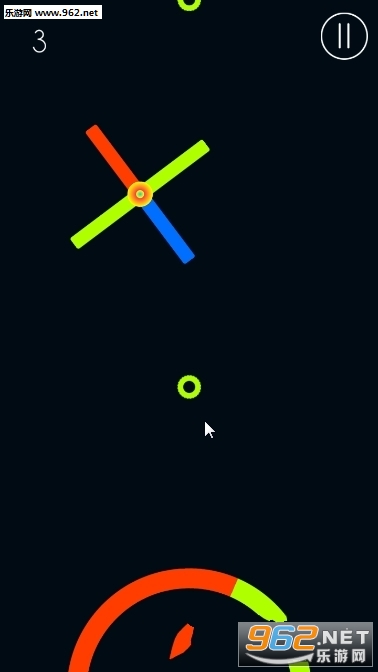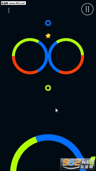 2、持续点击,让小球保持上升,小球智能穿越相同颜色的障碍物
