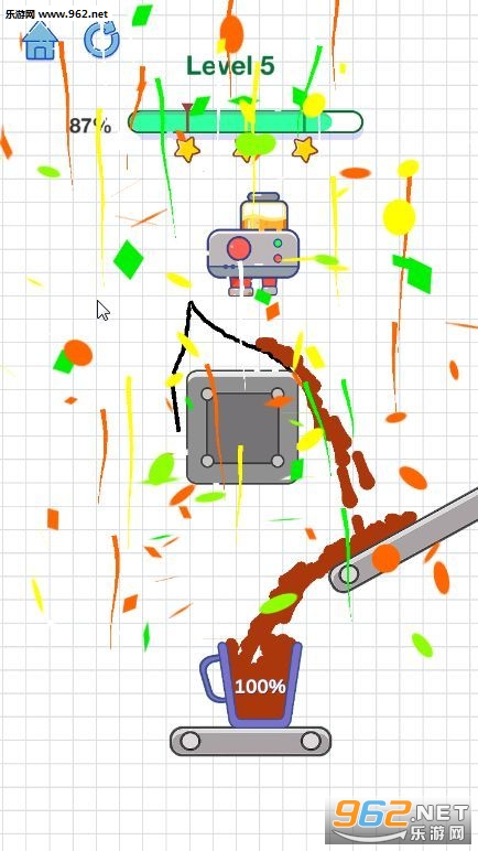 2、经典的脑力测试,通过手指画线,完成不同难度的任务,把咖啡引入杯中;