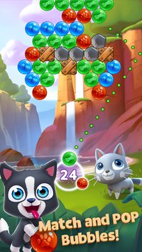 《宠物天堂泡泡安卓版》(Pet Paradise)是一款画面清新卡通的泡泡龙休闲游戏,游戏玩法与传统的泡泡龙玩法类似,玩家需要从下面发射各种不同颜色的泡泡来消除上面的泡泡,不同的关卡会有着不同的要求,玩家需要在有限的球内完成。