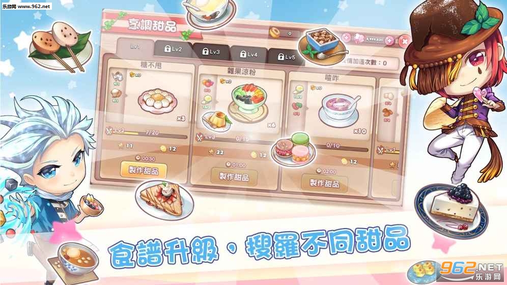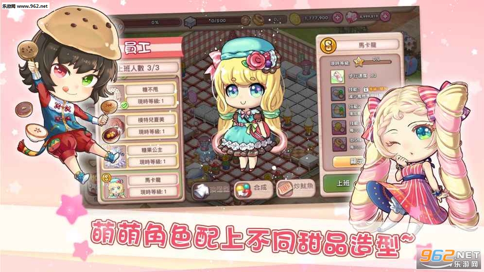 设有不同特色主题员工!食物主题,或是梦幻主题特色员工都非常漂亮!还能助你增加甜品屋收益,增强甜品屋生气!快集他们也是重点之一!