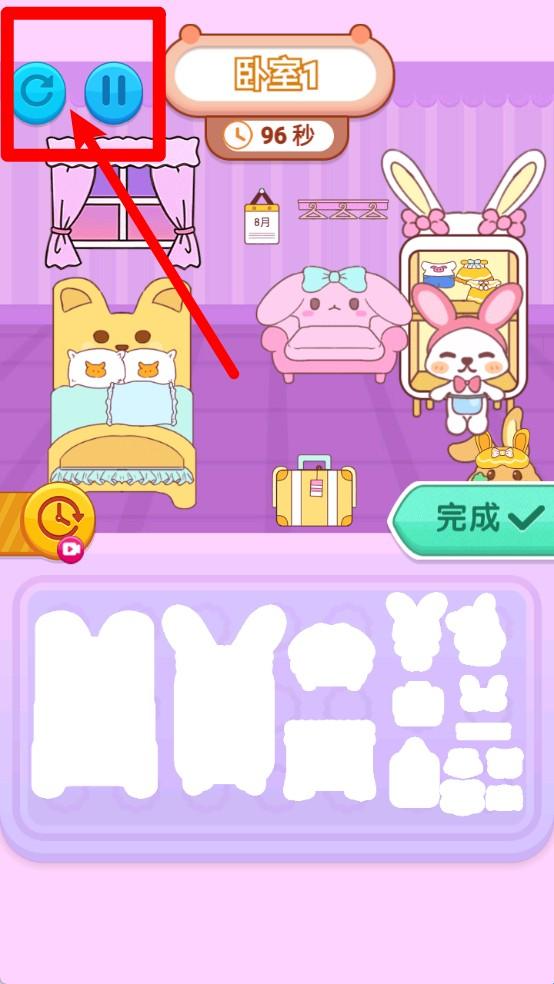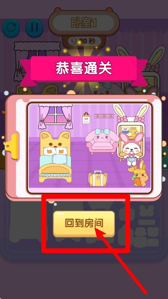 3、通关提示清晰:完成拼贴任务后会出现“恭喜通关”,点击“回到房间”按钮可快速返回,操作流畅直觉。