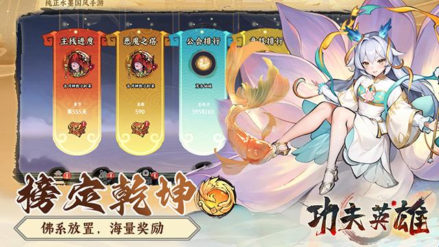 功夫英雄是一款卡牌策略类游戏,游戏整体画风采用色彩丰富的手绘卡通风格,游戏围绕五个种族,每个种族都有自己的属性和技能,玩家需自由搭配阵容,升级战力,在主线中试炼,收获资源,游戏玩法简单,上手超快,是在紧张学习工作中的放松一下的最好选择。