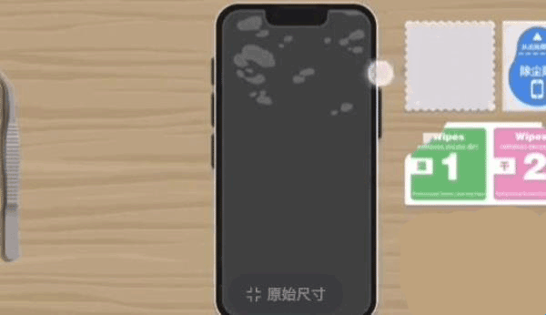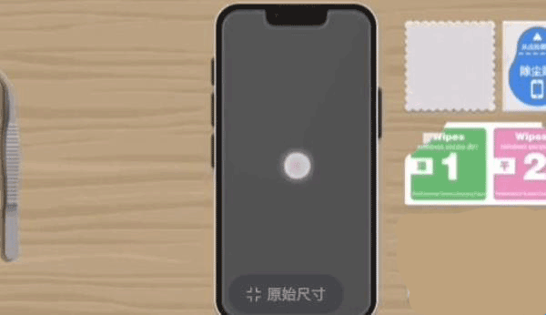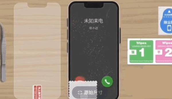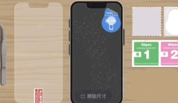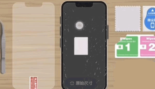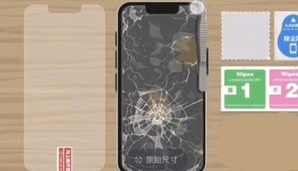 7、第七步:接着就是把左边的钢化膜放到手机上面了。