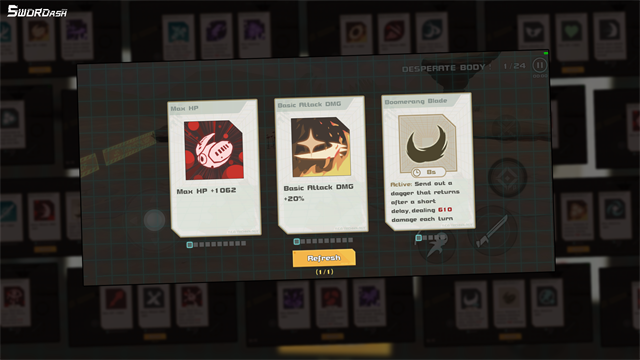 玩家每一次通关之后都有着三种不同的随机技能,玩家只能够选择一个。