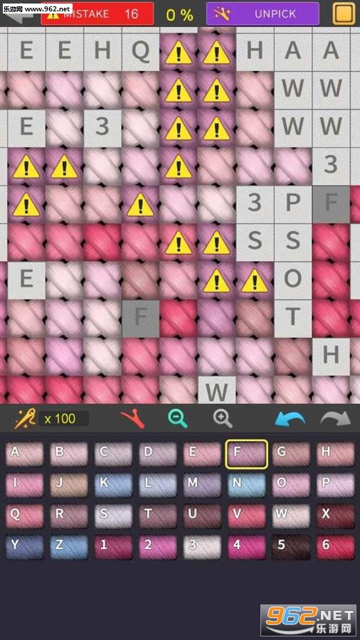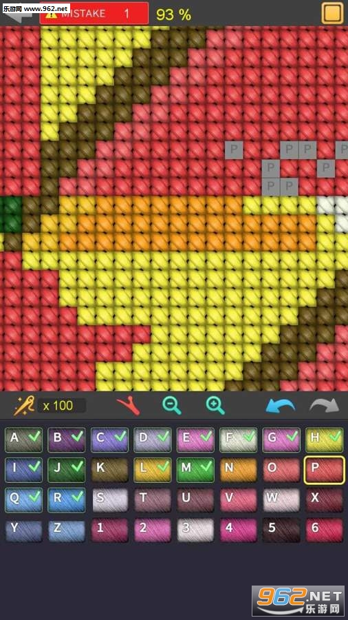 非常不错的十字绣游戏,游戏中玩家可以通过两指来放大和缩小图片,可以使用不同的颜色的毛线来进行十字绣,想要完成一幅十字绣作品,需要比较长的时间,考验玩家的耐心。
