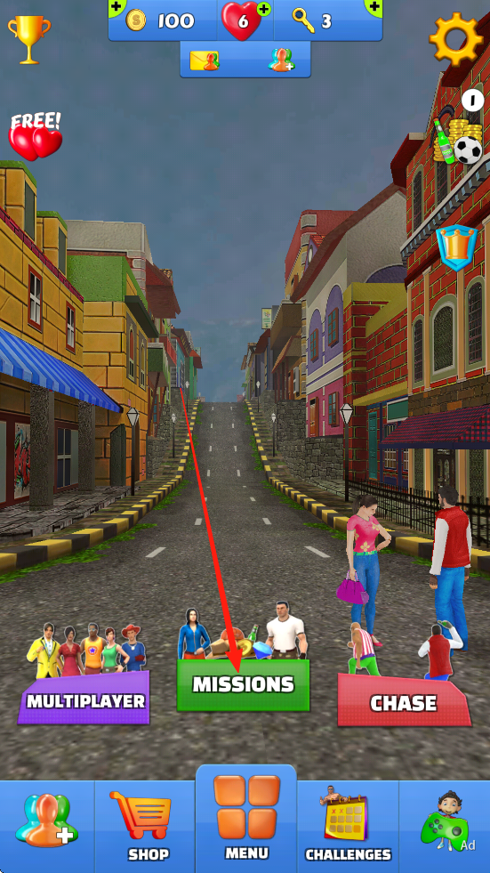1、打开街头追逐者游戏,点击MISSONS开始游玩