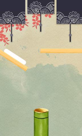 第12关,这关就是杯子里面有根面条,然后杯子在屏幕上任意滑动,最后杯子突然翻转,面条滑落,所以竹筒跟着杯子方位一起动就行了。