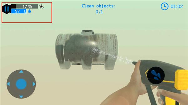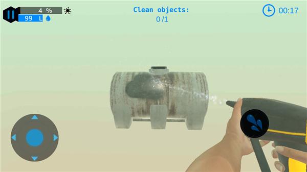 4.游戏界面右侧有水滴按钮,用来清洁物体,而左侧的控制键则负责调整视角,你需要确保清理的每个角落都无死角;