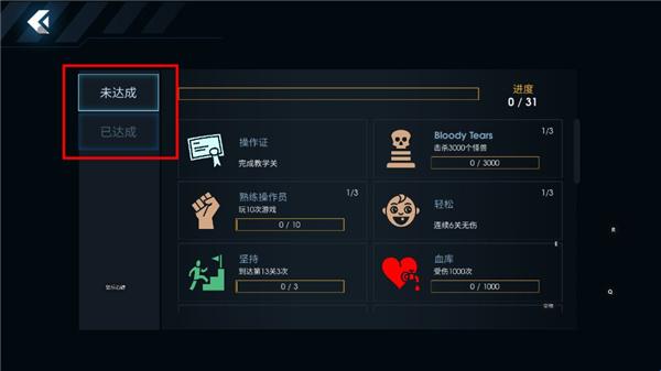 3.返回上一级,看到“成就”这里有已经达成的和还没有达成的,帮助玩家记录;