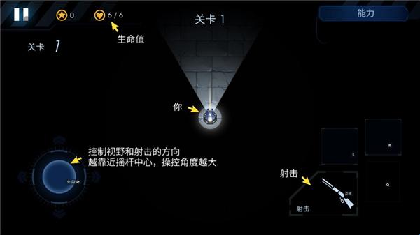 5.正式进入后,左下角是摇杆负责视野和射击的方向,右下角是射击;