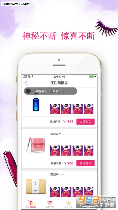 生活需要小惊喜,喵妹们的日常才会更有趣,早早起床看星座,今天运势又如何?拍个福袋来揭秘吧,这里有花更少钱得超值购的机遇,神秘礼包很超值,已知商品您心仪,神秘商品有心意,拆封时时有惊喜,拼的就是小运气。怦然心动有木有??